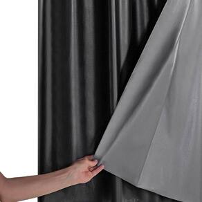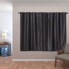 Cortina Blackout PVC com Tecido Voil 2,00 m largura (esticado) x 1,40 m altura A cortina possuí duas partes, o blackout de PVC e por cima o Tecido Voil. O PVC é um tipo de plástico especialmente feito para cortinas, possuí uma textura na frente para imitar um tecido e é colorido. A parte de trás do PVC é da cor cinza, a parte cinza que faz vedar 100 % a luz Por cima do PVC descrito anteriormente, é costurado o tecido Voil Produto composto por:01 Cortina 2,00 mts x 1,40 mts no total, sendo:02 Partes de 1,00 mts x 1,40 mts com 12 ilhoses no total de 28 mm Indicada para varão simples de até 1,50 mts, é possível utilizar tanto o varão grosso (28 mm), quanto o fino (19 mm)(Varão não incluso)