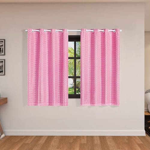 Cortina Blackout Pvc Com Tecido Voil Xadrez 2,00 M X 1,40 M - Rosa