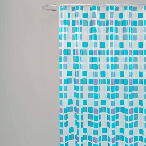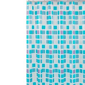 Cortina Box Banheiro Pvc Grossa Com Ganchos 198x180cm Uzoo Cor: Ladrilho Azul Branco Cortina de Box PVC 1,98m x 1,80m Estampada Uzoo
