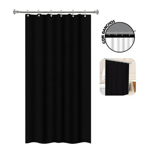 Cortina Box Fechada Antimofo com Ganchos para Banheiros Cor: Preta Cortina de Box Branco ou Preta com Ganchos: Praticidade, Conforto e Estilo para Seu Banheiro