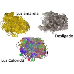 Os LEDs coloridos proporcionam uma iluminação vibrante e festiva, enquanto o fio branco se mescla perfeitamente com a decoração. A tomada macho/fêmea permite conectar mais cascatas ou pisca-piscas, tornando a sua decoração ainda mais personalizada e única.