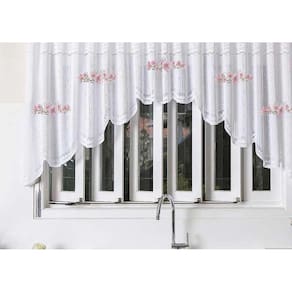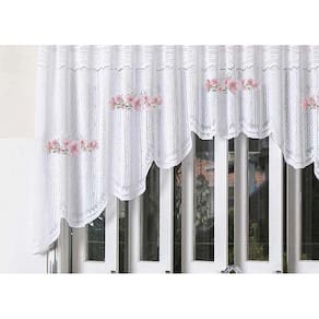 Feita em renda branca de alta qualidade, essa cortina possui as seguintes medidas: 3,00 metros de largura por 1,00 metro de altura. É importante ressaltar que o tamanho recomendado do varão para essa cortina é de 2,00 metros.