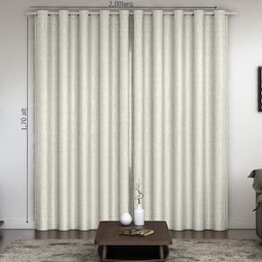 Tamanho: 1,70m alt x 2,00m larg. consumo 2,80m largura Cortina de cetim amassado, com forro em corta luz pvc, com ilhós. O corta luz protege a cortina contra o desgaste causado pelos raios solares. Impede a passagem da luminosidade. Impermeável, facilitando a limpeza. A beleza do cetim com a funcionalidade do corta luz - uma combinação perfeita. Cetim amassado 100% poliéster Forro 100% pvc