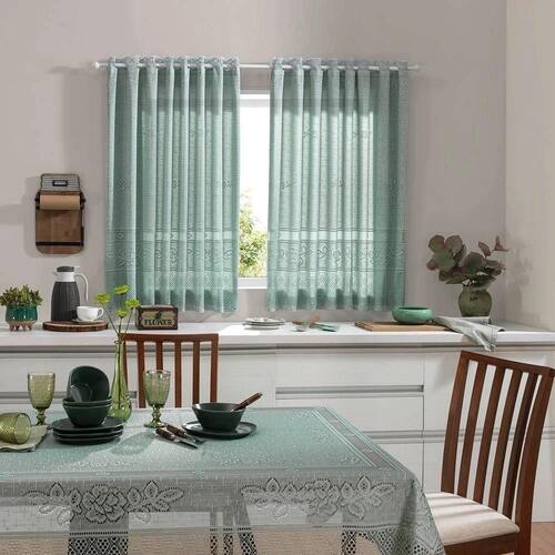 Cortina com toalha de mesa 4l quadrada pistache renda