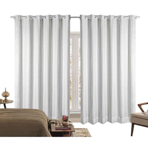Cortina Corta Luz Com Voil Xadrez 2,00m x 1,80m Para Varão Cor: Branco Cortina Blackout Corta Luz Com Voil