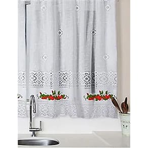 - Contém: 01 Cortina para cozinha em renda para varão com bandô
