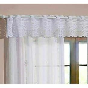 Descrição Cortina para cozinha interlar renda branca panela , estilo de renda com uma linda estampa com tulipas tem um bandô de 30 centímetros que incrementa a cortina. É confeccionada com um material sintético que garante uma maior durabilidade e praticidade. Vai deixar a sua cozinha linda e pronta pra arrasar Informações - contém: 01 cortina para cozinha em renda para varão com bandô - tamanho: cortina - 2,00 m largura x 1,50 m altura x 0,30m bandô - tamanho recomendado do varão - 1,50 m - composição: 100% poliéster - obs.: não acompanha varão Verifique as medidas antes da compra Marca: Não Informado