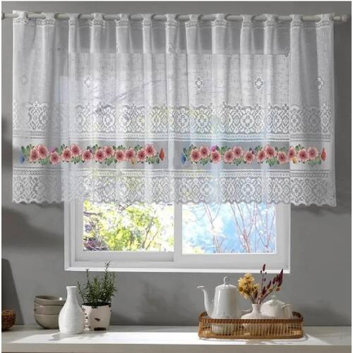 Cortina Cozinha Valência 200cmx150cmx30cm Interlar Cor: Branca Hibisco Informações do Produto Cortina de Renda Valencia - Interlar Deixe sua cozinha mais elegante com as cortinas de renda valência, confeccionadas com renda trabalhada, , vai deixar a sua Copa Cozinha ainda mais linda, sofistica e com toque de leveza. Características: - Tecido de renda - Cortina com abertura central - Possui Bandô Especificações Técnicas: Tamanho: 2,00x1,50m Indicado para varão de até: 1,50m Consumo Total do Tecido: 2,00m - Dividida em 2 partes de 1,00m Marca: Interlar Composição: 100% Poliéster Contém: 01 Cortina com bandô Imagem meramente ilustrativa, acessórios não acompanham o produto. Observações: Considere as medidas e formatos especificados na descrição do produto. O consumo de tecido refere se a cortina totalmente esticada. Seguir as instruções de conservação que acompanha a etiqueta do produto. Não acompanha suporte, trilho ou varão. Fotos ilustrativas. Marca: Não Informado Ean: 7892774418173