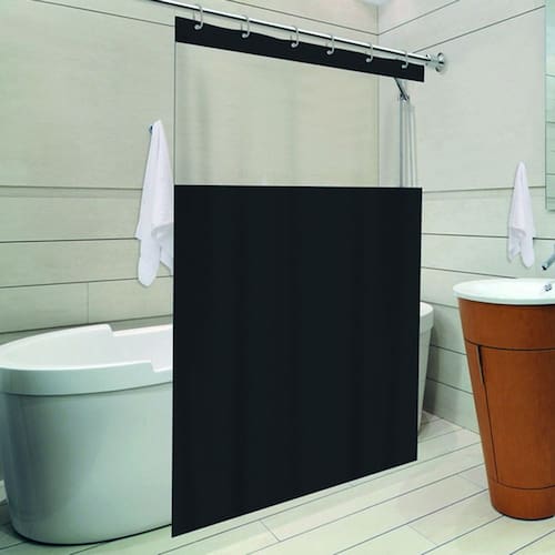 Contém: 1 Cortina Para Box Banheiro Com Visor 1,38 x 1,98 Preto