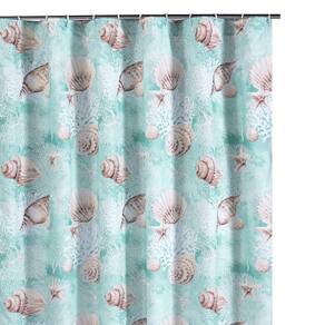 Cortina de chuveiro Benjara Logan de 72 polegadas, estampa de conchas em azul claro costeiro