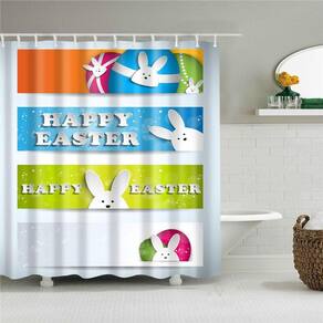 Cortina de chuveiro, coelhinho da Páscoa, estampas de ovos, poliéster lavável