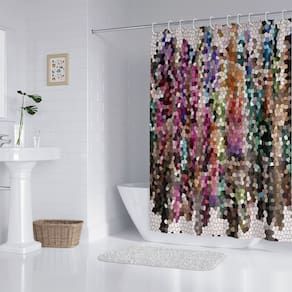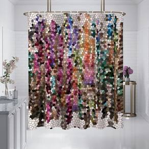 Tamanho da cortina de chuveiro: 180* 180 cm Peso: 390 g Material: tecido impermeável Cor: igual à primeira foto Pacote: 1 x cortina de chuveiro Arte vibrante em mosaico: apresenta um design de mosaico inspirado em vitrais com ricos fragmentos multicoloridos, adicionando um elemento decorativo artístico a qualquer banheiro. Material de tecido impermeável: feito de tecido impermeável durável que bloqueia efetivamente a umidade e ajuda a manter a área do chuveiro seca e limpa. Efeito visual pintado à mão: o padrão simula arte em mosaico pintada à mão com profundidade de cor texturizada, aprimorando a estética moderna da decoração do seu banheiro. Fácil instalação: leve e compatível com varões de chuveiro padrão; inclui ganchos para suspensão rápida e segura. Resistente ao desbotamento e fácil de cuidar: a impressão de alta qualidade mantém a vibração das cores ao longo do tempo e pode ser facilmente limpa para o uso diário.