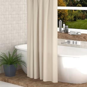 . Material: poliéster de alta qualidade. Tela durável, mas suave ao toque que é resistente à água. fácil de limpar e lavável na máquina.. Secagem rápida, inodora, ecológica e suficientemente grossa para maior privacidade.. Medidas: 1,80 m x 1,80 m/72 polegadas x 72 polegadas. Fácil de lavar e secar rapidamente.. Este tamanho se adapta à maioria das banheiras ou chuveiros. Não inclui aros de instalação.. Cores disponíveis: Bege. IMPORTANTE: não inclui aros de instalação.