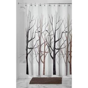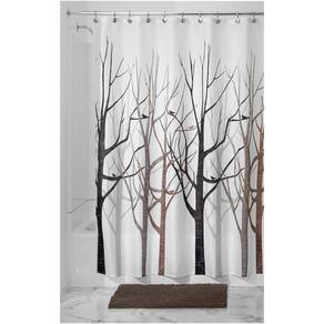 Cortina de chuveiro iDesign Fabric Forest para banheiro principal, convidado, infantil e universitário, 72" x 72", preta e cinza