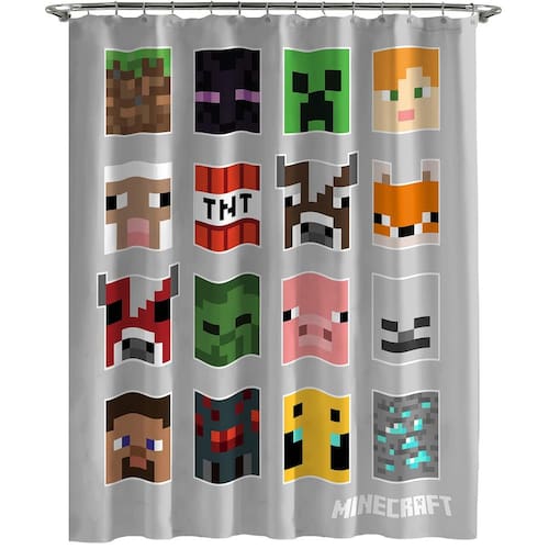 Transforme seu banheiro com esta cortina de chuveiro Minecraft Mobs and Blocks. Esta cortina de chuveiro dará vida à sua casa de banho com seus monstros e blocos favoritos: Alex, Steve, Creeper, Enderman, Skeleton e Zombie. A cortina de chuveiro Minecraft certamente tornará a hora do chuveiro e do banho divertida e emocionante! A cortina de chuveiro mede 178 x 183 cm. Feita de microfibra 100% poliéster. Fácil de cuidar, lavar à máquina com água fria e secar em temperatura baixa. - Ajuste perfeito e design divertido – a cortina de chuveiro mede 178 x 183 cm. Serve para uma haste de cortina de chuveiro padrão (forro não incluído). A cortina de chuveiro é fácil de instalar e adicionará instantaneamente um toque bonito. - Alta qualidade e longa duração – a cortina de chuveiro Minecraft é feita de 100% microfibra. Para limpar, lavar à máquina com água fria. Secar em temperatura baixa. - Ótimo presente: a cortina de chuveiro é o presente perfeito para o seu ente querido com seus monstros e blocos favoritos: Alex, Steve, Creeper, Enderman, Skeleton e Zombie. Certamente tornará a hora do banho e do banho divertida e emocionante. - COMPRE A COLEÇÃO MINECRAFT - Melhore a experiência de banho e cama do seu filho com nossos outros produtos Minecraft. Combina acessórios de cama, banho e praia disponíveis (vendidos separadamente). - Nossa empresa familiar – Nossa empresa ainda é pequena e familiar. Temos muito orgulho de nossos produtos e nosso atendimento ao cliente insuperável. Sabemos que nossos clientes maravilhosos são a razão pela qual estamos no negócio! Oferecemos produtos de excelente qualidade, não tóxicos. Com nossos acessórios combinados, você pode misturar e combinar nossos produtos exclusivos de cama, banho e praia para meninos e meninas de alta qualidade.