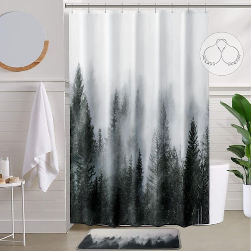 Razões para escolher a cortina de chuveiro Ortigia: * Ótimo design e acabamento. * Deixe seu banheiro mais animado e cheio de sentido artístico. * Diferentes estilos para diferentes reformas de banheiro. * Proporciona a você um ambiente saudável: limpo e confortável. Instruções de cuidados: Lavar em água fria, lavável na máquina. * Não usar alvejante. * Não secar na secadora. * Não passar a ferro. * Não lavar a seco. Aviso: * Devido às medidas manuais, pode haver uma diferença de 2% a 3%. * Observe que, devido às diferenças de luz e cor dos monitores, os objetos reais podem ter pequenas diferenças de cor em relação às fotos. - O pacote inclui: 1 cortina de chuveiro de floresta enevoada de 137 x 198 cm e 9 ganchos de metal. A parte superior da nossa cortina de chuveiro tem 9 ilhós de metal, que não são propensos a ferrugem, e 9 ganchos de metal fazem a cortina deslizar mais facilmente. - Estampa de floresta requintada: estampa moderna e exclusiva de floresta enevoada, alta definição com cores vivas, faz você se sentir como na floresta natural com a névoa fluindo por toda parte, criando uma sensação de calma e relaxamento, fazendo você aproveitar o banho. - Tecido de poliéster impermeável: Feito de tecido 100% poliéster resistente, as cortinas de banheiro ORTIGIA são grossas o suficiente para proteção da privacidade e bem drapeadas. O tecido também é macio ao toque e à prova d'água, permitindo que a água deslize rapidamente e permaneça seca. - Vários usos: a cortina de chuveiro de árvore natural é adequada para qualquer banheiro, casa, apartamento, dormitório, campista, janela, armário, clube de atletismo, academia e assim por diante. Não é apenas prática, mas também bonita, e é uma decoração ideal para sua casa. - Instruções de cuidados: a cortina de chuveiro natural é fácil de limpar, seca rapidamente, lavável na máquina, não desbota. Lavar à máquina em água fria, ciclo delicado, não usar alvejante, passar a ferro em baixa temperatura, se necessário. Sacos de roupa de malha são recomendados.