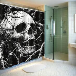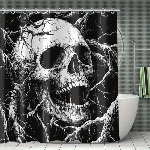 Tamanho da cortina de chuveiro: 180* 180 cm Peso: 380 g Material: poliéster Cor: igual à primeira foto Pacote: 1 x cortina de chuveiro Design impressionante de caveira: apresenta um design de caveira arrojado e detalhado entrelaçado com galhos de árvores, oferecendo uma aparência gótica e ousada ao seu banheiro. Material de alta qualidade: feita de poliéster durável, esta cortina de chuveiro é à prova d'água, garantindo que resista à umidade e permaneça fácil de limpar. Perfeito para banheiros com temas góticos ou escuros: o esquema de cores preto e branco, combinado com um design exclusivo de caveira, complementa a estética do banheiro com temas góticos e escuros. Fácil instalação: inclui 12 ganchos para uma instalação sem complicações, garantindo que sua cortina de chuveiro fique pendurada com segurança e tenha uma ótima aparência. Decoração versátil: ideal para banheiros, hotéis ou como elemento criativo de decoração para quem gosta de designs ousados e góticos ou acessórios com tema de Halloween.