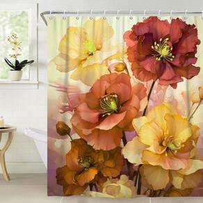 Cortina de chuveiro Uiiooazy Vermelha Amarela Rosa Floral 183x183cm