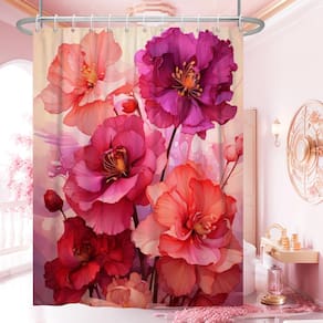 Cortina de chuveiro Uiiooazy Vermelha Rosa Quente Floral 183x183cm