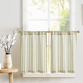 É por isso que você vai adorar as cortinas de cozinha jinchan para janelas, cortinas listradas, tratamentos de janela, cortinas de janela pequenas, cortinas de janela com listras de nível de fazenda, cortinas com filtro de luz! Coloque estas cortinas listradas como um toque final na decoração da sua casa! Cortinas de cozinha bem feitas, tratamentos de janela: esta cortina de linho possui um bolso superior de haste de 7,6 cm. Nossas cortinas de cozinha são vendidas em 2 painéis medindo 66 cm de largura por 76 cm de comprimento. Renove a aparência de suas janelas com nossas sanefas listradas. Cortina de janela com filtragem de luz: Estas cortinas de janela pequenas de poliéster são leves, difundindo a luz indesejada de cima enquanto oferecem privacidade. Uma combinação de linhas verticais retrô e linhas inclinadas confere um toque de exclusividade e elegância à peça. Desfrute de um ambiente sereno e aconchegante com nossos tratamentos de janela de cortinas curtas! Cortinas versáteis de camada de tratamento de janela: as cortinas de cozinha de mistura de linho e poliéster para janelas são a parceira elegante da sua porta de vidro, janela da sala de estar, janela do banheiro, lavanderia, escritório ou quarto. Estas cortinas de cozinha country são fáceis de instalar e manter. Escolha diferentes métodos de pendurar com bolso para mastro ou com anéis de encaixe (vendidos separadamente). Decore sua casa com cortinas curtas com estampa listrada! Cortinas de cozinha country fáceis de cuidar: nossos painéis de janela country são duráveis graças ao tecido resistente de mistura de linho-poliéster. Lavável na máquina em água fria em círculo delicado e secar na máquina em temperatura baixa. Não usar alvejante. Os vincos nas cortinas da cozinha da embalagem e do envio podem ser pressionados por ferro ou vaporização. - Cortinas de meia janela: cada pacote contém painéis de cortina de 2 camadas. Cada painel mede 66 cm L x 76 cm C e tem um bolso superior de 7,6 cm que combina com a maioria dos postes padrão ou de extensão, que funciona bem com hastes de tensão ou hastes normais, fácil de instalar e deslizar - Design listrado: projetado com uma combinação de linhas verticais e diagonais, adiciona simplicidade e elegância modernas às cortinas e está disponível em uma ampla ampla variedade de cores que combinam facilmente com qualquer fundo decorativo - A luz encontra a privacidade: estas cortinas de café são feitas de tecido de mistura de linho leve e arejado, que pode filtrar suavemente a luz solar e também proporcionar privacidade. Você pode aproveitar o tempo aconchegante aproveitando a luz suave dentro - Cortinas de linho versáteis: Estas cortinas combinam bem com estilos como casa de fazenda, rústica e moderna, adequadas para cozinhas, portas de vidro, salas de estar, banheiros, lavanderias, aprimoram diferentes temas de decoração - Fácil de cuidar: lavável na máquina em água fria em círculo suave e secar na máquina em temperatura baixa. Os vincos nas cortinas curtas da embalagem e do envio podem ser pressionados passando a ferro ou vaporizando