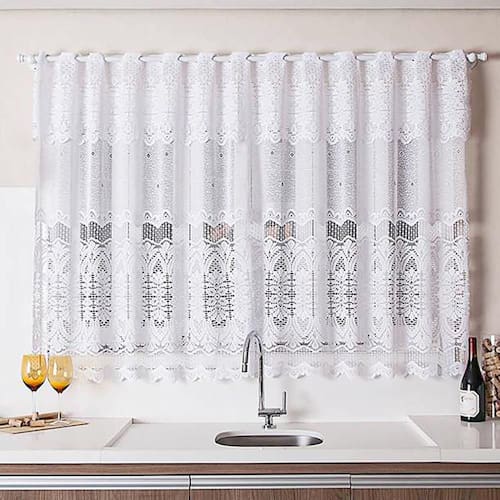 A Linha de Renda Clássica da Interlar é digna do luxo e beleza, foi elaborada especialmente para conferir sofisticação ao ambiente. O tecido rendado é leve e delicado, desenvolvido com uma técnica exclusiva de entrelaçamento dos fios, dando um toque charmoso e romântico a casa. Características: - Cortina com passante; - Barra decorativa; - Fácil de Lavar; - Decora o ambiente; - Resistência e durabilidade; - Ótimo caimento e acabamento. Especificações: Marca: Interlar Modelo: Clássica com Bandô Arabesco Cor: Branca Composição do Tecido: 100% Poliéster Largura: 2,20 Mts Altura:1,20 Mts Bandô: 30 cm Indicações: - Varão com Até 1,80 Mts de Comprimento; - Tipo do Suporte: Simples para 1 varão ; - Suportes e Varão não acompanham o Produto. Qual a medida ideal de cortina para a sua janela: A medida certa para sua cortina precisa ser no mínimo 30cm maior que a janela na largura e 45cm maior na altura. O varão deve ser fixado a 15cm da parte superior da janela, o suporte do varão ficará preso à parede na distância de 15cm das laterais da janela e as ponteiras a 5cm de cada suporte. Conteúdo Da Embalagem: 01 Cortina De Renda Para Cozinha Clássica Com Bandô Branca Arabesco 2,20 X 1,20 X 30Cm Interlar Ean: 7892774094513