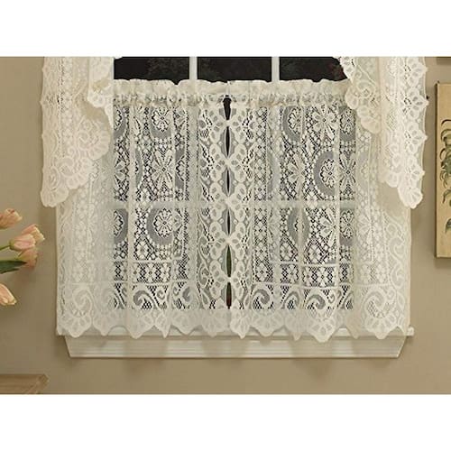 Sweet Home Collection Cortina de cozinha floral de renda pesada estilo velho mundo, camada de 61 cm, creme Hopewell - 24 níveis: 2x - 24 altura x 29 largura cada - 58 largura total, importado - Tecido: 100% poliéster - Cor: creme - Lavar à máquina com água fria no ciclo delicado. Não usar alvejante. Secar no varal. Passar a ferro quente se necessário