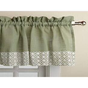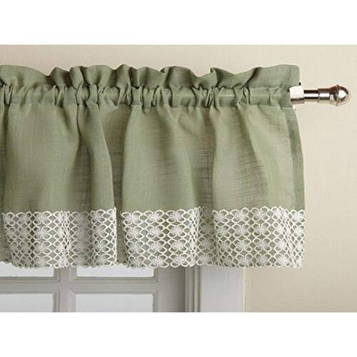 Sweet Home Collection Cortina de cozinha, sanefa, sálvia - Cor: Sálvia - Padrão: cor lisa texturizada com renda de margarida branca - Estilo da cortina: sanefa - Estrutura: 1,5 haste de bolso - Material: 100% poliéster