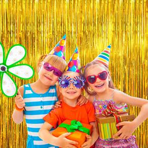 Ótimas decorações de festa para muitas ocasiões, incluindo fraternidades, irmandades e quartos infantis para ocasiões especiais e festas. Decoração de festa perfeita para Ano Novo, Natal e aniversários. O pacote inclui: 1. 4 pacotes de cortina de franja de folha de ouro metálica 2. Informações de tamanho: 3 pés de largura x 8 pés de queda por pacote.