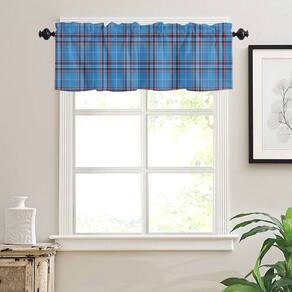 Saia de cortina de janela para cozinha, design tradicional de edredão, elementos do folclore escocês, padrão xadrez, saia de cortina de bolso com haste para banheiro, quarto, sala de estar, café, 54 x 18 polegadas