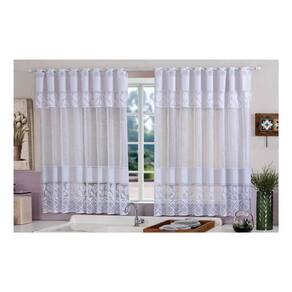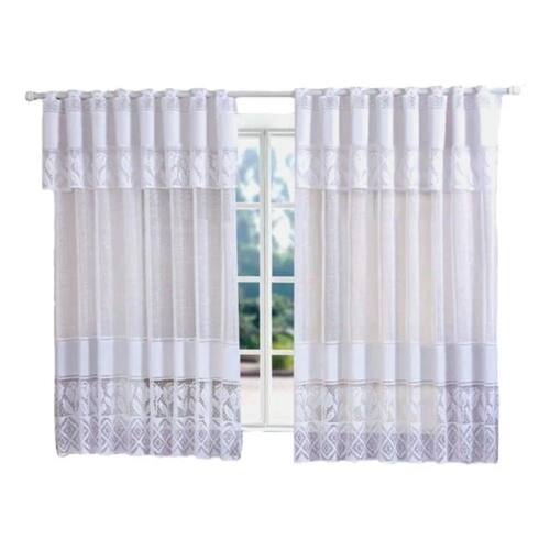Descrição Cortina de Cozinha com Bando de renda, Branca para Varão de 2 metros ou menor.