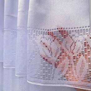 Linda cortina para qualquer ambiente que desejar, cozinha, sala ou quarto. Confeccionada em renda com detalhes em arabescos e tulipas, com toque suave e a delicada transparência deixará o ambiente extremamente aconchegante.