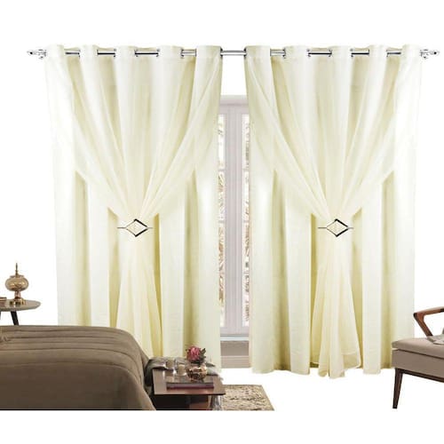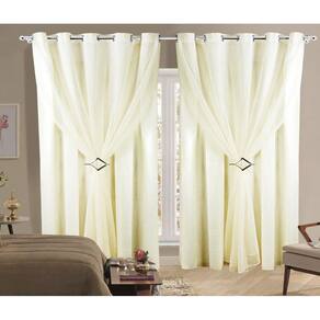 Cortina De Varão Voil Sala Quarto 3,00x2,30 Forro Microfibra Cor: Palha Cortina Decorativa Em Tecido Voal Com Forro Em Microfibra
