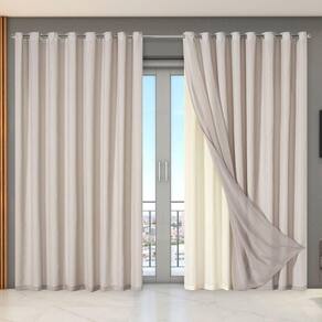 Cortina Dual Forro Com Voil Gaze Belga 4,00 M X 2,70 M 100% Poliéster - Bege Cortina Dual Forro Microfibra com Voil Gaze Belga 4,00 m largura (esticado) x 2,70 m altura As Cortinas da Linha Dual da EDDI Casa é ideal para ambientes que necessitam receber luminosidade sem abrir mão da privacidade, garantida pelo forro de microfibra.