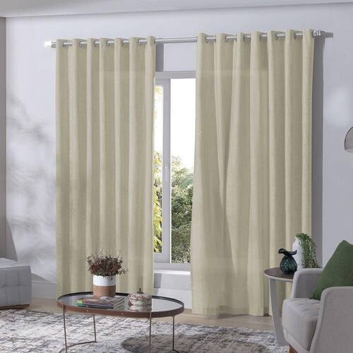 A Cortina Duplex Mônaco possui linho flamê decorativo e forro. Os dois tecidos são presos no mesmo ilhós, formando uma só cortina, com ótimo caimento e acabamento.
