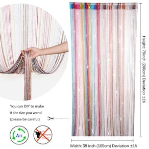 Ficará mais grossa com duas (ou mais) cortinas de cordão penduradas juntas, então você pode pedir 2 peças ou mais se quiser mais espessura Material: poliéster Tamanho: 100x200cm/39x79 polegadas Permite erros de ± 10 cm Características: Sem miçangas Com fita prateada brilhante para um efeito cintilante A cortina pode ser facilmente cortada no tamanho necessário Não é fácil de emaranhar Decoração ideal para portas, casamentos, cafeterias, residências sala, quarto, janelas, portas, armário, portas de pátio, festa, restaurante, etc. Garantia de um ano: Se você tiver algum problema, não hesite em nos contatar Pacote: Dois painéis