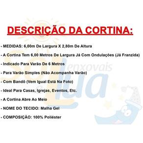 Cortina gana 6 metros bandô sala quarto porta grande + bandô - marrom cortina gana 6 metros- medidas: 6,00m de largura x 2,80m de altura- a cortina tem 6,00 metros de largura já com ondulações (já franzida)- indicado para varão de 6 metros- para varão simples (não acompanha varão)- com bandô (vem igual está na foto)- ideal para casas, igrejas, eventos, etc.- a cortina abre ao meio- nome do tecido: malha gel- composição: 100% poliéster- contém na embalagem:01 - cortina 6,00m x 2,80m