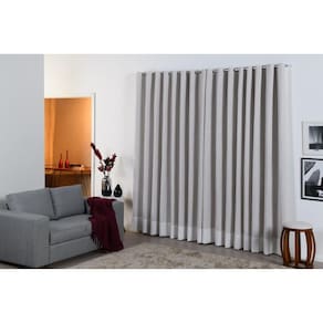 Contém: 01 cortina gaze de linho com forro blackout tecido com ilhós cromado, sendo duas partes de 1,5m por 2,20 de altura.