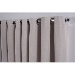 contém: 01 cortina gaze de linho com forro blackout tecido com ilhós cromado, sendo duas partes de 1,5m por 2,70 de altura. Cor - linho off whitte com forro blackout areia. Bainha lateral 2 cm, barra 20 cm pra dar ótimo caimento e grande destaque na cortina. Fotos do produto, tirado no nosso próprio studio. não acompanha o varão