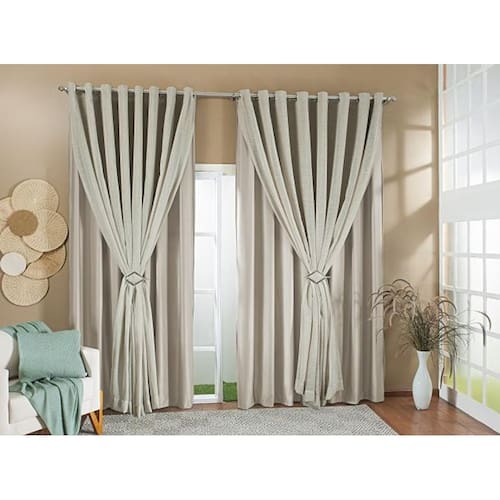 Contém na embalagem: 01 cortina com forro 3,00m largura x 2,80m altura -ilhós cromado em toda parte superior