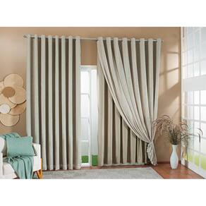 Cortina em 2 partes de 4,00m x 2,40m Forro em tecido blackout e frente em voil flame gaze de linho . Ean: 7893467158499