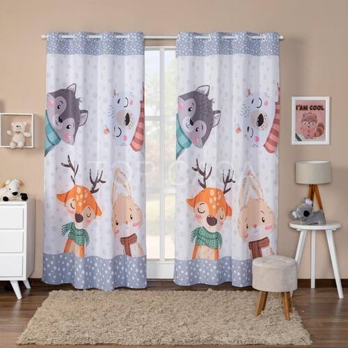 Cortina Infantil Estampada 3,00X2,20M Amiguinhos Da Neve