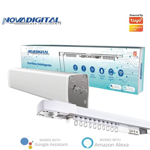 kit completo para Cortina Inteligente Wi-Fi até 4,2 Metros Imagine a sua cortina abrindo automaticamente logo ao amanhecer, ou então fechando ao início da tarde, sem que você precise se preocupar em ajustá-la manualmente. Agora isso é totalmente possível e com o controle total nas palmas de suas mãos. Automatize sua casa de maneira inteligente com a cortina inteligente da Nova Digital.Monitore e ajuste sua cortina de onde você estiver, diretamente do seu smartphone pelo App disponível para sistema Android ou iOS. Compatível com os Apps Smart Life, Tuya ou Nova Digital. Além disso, a cortina é totalmente compatível com Alexa da Amazon e Google Assistant para comando de voz. É possível a criação de cenas inteligentes para a cortina abrir ou fechar conforme pré configurado de modo automático. Automatize sua cortina de trilhos com nossa cortina inteligente, ele possuí motor, trilhos, correia e os rodízios compatível com diversos modelos de cortina e tamanhos, abra e feche sua cortina a hora e de onde quiser, programe horários de abertura e fechamento, apenas com um toque no smartphone ou comando de voz ela te obedecerá. Cortina Inteligente Wi-FiModelo:C-GM46Modelo do motor: GM46Material: AlumínioTensão de entrada: 90-240V ACFrequência: 50/60HzPotência: 20W/ 2.0NmWi-Fi: 2,4GHz IEEE 802.11 b/bg/nPeso Máximo suportado: 50KgVelocidade(RPM):100RPMAplicativo: NovaDigital/Smartlife Acompanha na embalagem:-Trilhos- Caixa do motor- Controle RF- Travas de engrenagem- Correia- Guias da cortina- Grampo de correia- Emendas- Tampões- Engrenagens do motor