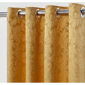 Cortina Jacquard Sala e Quarto 4,00x2,50 Dourado Ilhós Quadrado Cromado Cortina Jacquard Em Tecido 4,00 x 2,50 Os ilhós são Quadrados cromados. Tecido com excelente caimento. Indicado para varão de 4,00Mt Medidas:4,00m largura x 2,50m altura Acabamento:Feito bainha nas bordas e nos barrados. COMPOSIÇÃO:Tecido 100% Poliéster