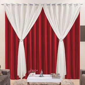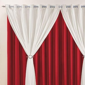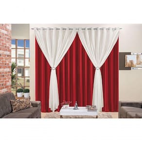 Cortina Jéssica 4 Metros Vermelha Tecido Microfibra Com Voal Clássica Sala
