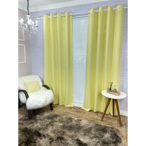 Cortina Lana Amarelo-bebê Oxford 300x250 Para Sala/Quarto Cortina de Tecido Oxford 3,00 metros de largura esticado x 2,50 metros de altura