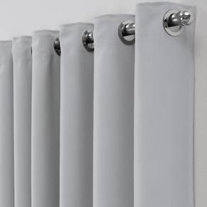 Cortina em tecido blackout, bloqueia até 96% de claridade, os ilhóses são cromados e quadrados, o tecido tem um excelente acabamento e caimento.