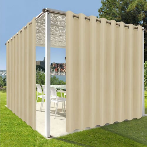 Decore espaços internos ou externos com nossos painéis de cortina duráveis com ilhós prateados. Estes painéis de cortina estão disponíveis em sólidas para você escolher, o que é ótimo para adicionar vivacidade e vivacidade à sua decoração. Adequado para uso interno e externo, estas cortinas são feitas com tecido de poliéster premium repelente de água, UV e resistente ao desbotamento. Usando nossas cortinas ao ar livre, você pode desfrutar de total privacidade em um café ou bistrô ao ar livre, decorar uma varanda ou lanai, adicionar cor e vitalidade a um pátio ou gazebo, ou adicionar atmosfera suave a uma área de estar de pérgola ou varanda. - Conteúdo do pacote: cada pacote inclui 1 painel de cortina impermeável ao ar livre com 16 ilhós prateados à prova de ferrugem com diâmetro interno medindo 4 cm. Nosso painel de cortina mede 304 cm de largura por 274 cm de comprimento. - Cortinas de bloqueio solar, proteção de privacidade e resistentes ao desbotamento: nossas cortinas externas protegem você dos raios UV prejudiciais e da luz solar, criando uma área de estar ao ar livre confortável. As cortinas externas da OutdoorLines são feitas de tecido leve, mas opaco, que não permite que outras pessoas vejam completamente, permitindo que você aproveite seu tempo privado. Estes painéis de cortina para ambientes externos são resistentes ao desbotamento da cor e não serão facilmente lavados ao longo do tempo. - Tecido premium resistente e respirável: as cortinas OutdoorLines ao ar livre são feitas de 100% poliéster de primeira classe. Estas cortinas duráveis ao ar livre são feitas de tecido impermeável e respirável. - Cortinas impermeáveis adequadas para todos os usos internos e externos: Estas cortinas de cortina à prova d'água garantirão que seus espaços ao ar livre e móveis permaneçam protegidos durante dias chuvosos ou com neve. Eles são adequados para espaços internos e externos, como sala de estar, quarto, varanda, pátio, varanda frontal, gazebo, cabana e muito mais. - Fácil de cuidar: cortinas laváveis na máquina com água fria, não trumble tente, passe a ferro a baixa temperatura, se necessário.