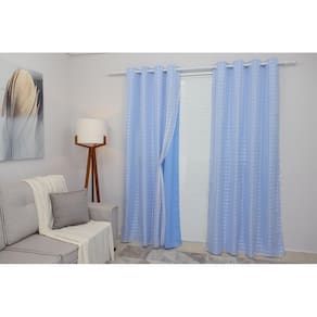 Cortina oxford azul-bebê com voil xadrez sala/quarto 300x250 - fabritex Cortina tecido oxford com voil xadrez 3,00 metros de largura esticado x 2,50 metros de altura