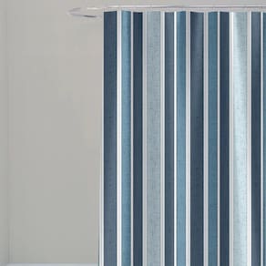 Cortina Para Box Banheiro Antimofo Poliéster 198x180cm Listra Azul Vertical -