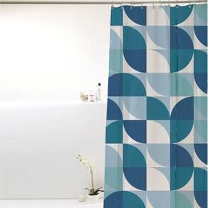 Cortina Para Box Banheiro Antimofo Poliéster 198x180cm Onda Azul -